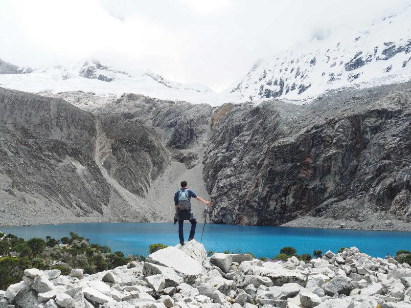 One of the most beautiful day hikes around Huaraz is Laguna 69. Don’t ask me about the name, I have no idea why. The hike to the beautiful sky-blue lake is amazing – not too easy and not too difficult, not too short and not too long. Just perfect.