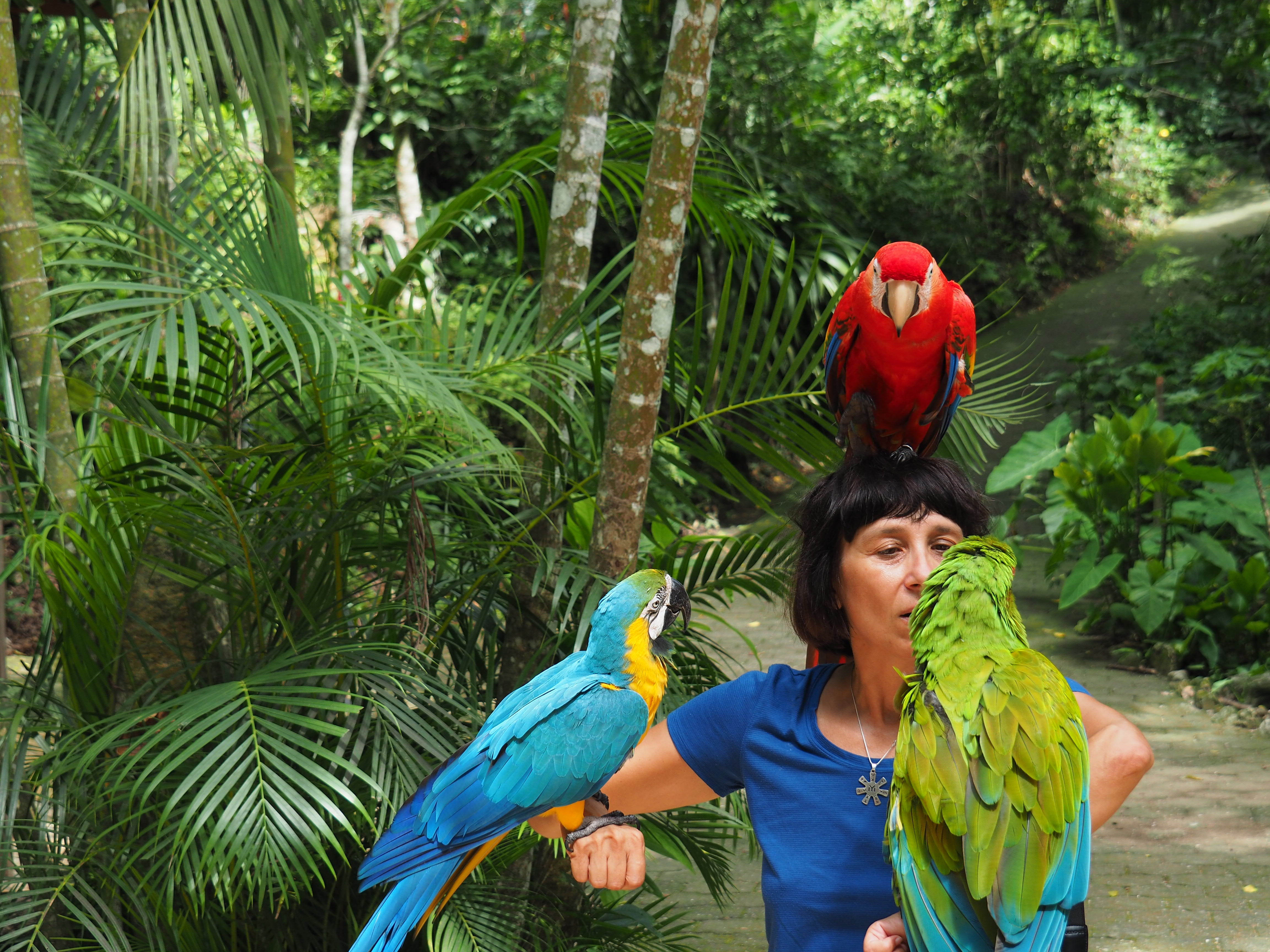Very close to the village of Copan ruins is Macaw Mountain – a bird rescue, rehabilitation, and release center. It is an exciting, inspiring and sad place. It is an exciting place to see so many different tropical birds, not only macaws but toucans, owls, hawks and many butterflies.