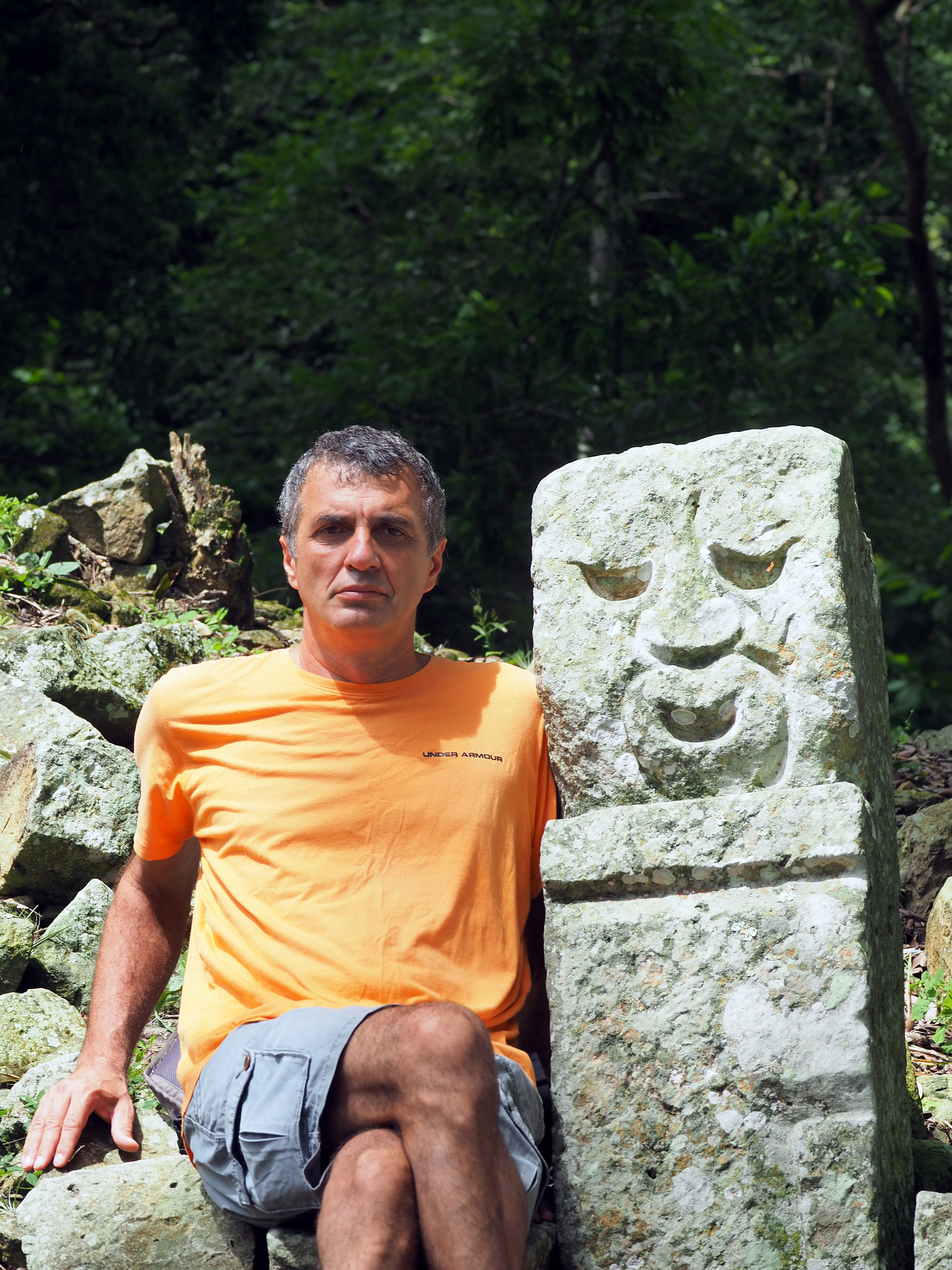 I had one more reason to visit Tikal. According to an old Mayan legend confirmed by modern DNA research, the Mayan city of Copan was rebuilt to great power when K’inich Yax K’uk’ Mo (or Lord of the West) was expelled from Tikal and together with his close friends went to Copan and married local Mayan princess. An ancient text and recent DNA findings confirmed the legend. According to the same legend the ghost of his wife, the princess still shows herself to a chosen one on full moon nights. During the day she and the other rulers of the ancient city were hidden in the ruins of Copan and Tikal as snakes. If the enchanted snakes are baptized in a church the curse will be broken and the new Mayan city will rise in the jungle of Central America. When we visited Tikal, I saw a snake, but I was too afraid to catch it and bring it to the church. And I am not good at the religious text, so I couldn’t perform the baptism right there between the broken stones and steps of the ancient pyramids. I tried to mumble some enchantments I vaguely remembered from Christian orthodox ceremonies but Ivan said that most likely these ancient Mayan souls will not understand Bulgarian. So much with my good intention to revive the Mayan civilization.