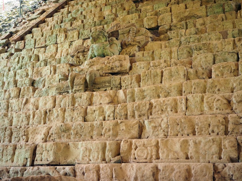In Copan, there are many amazingly detailed carvings on the temples and throughout the ruins.