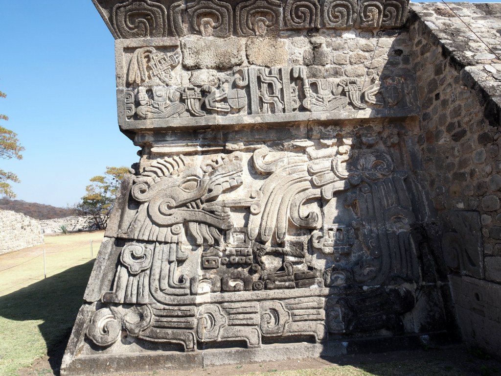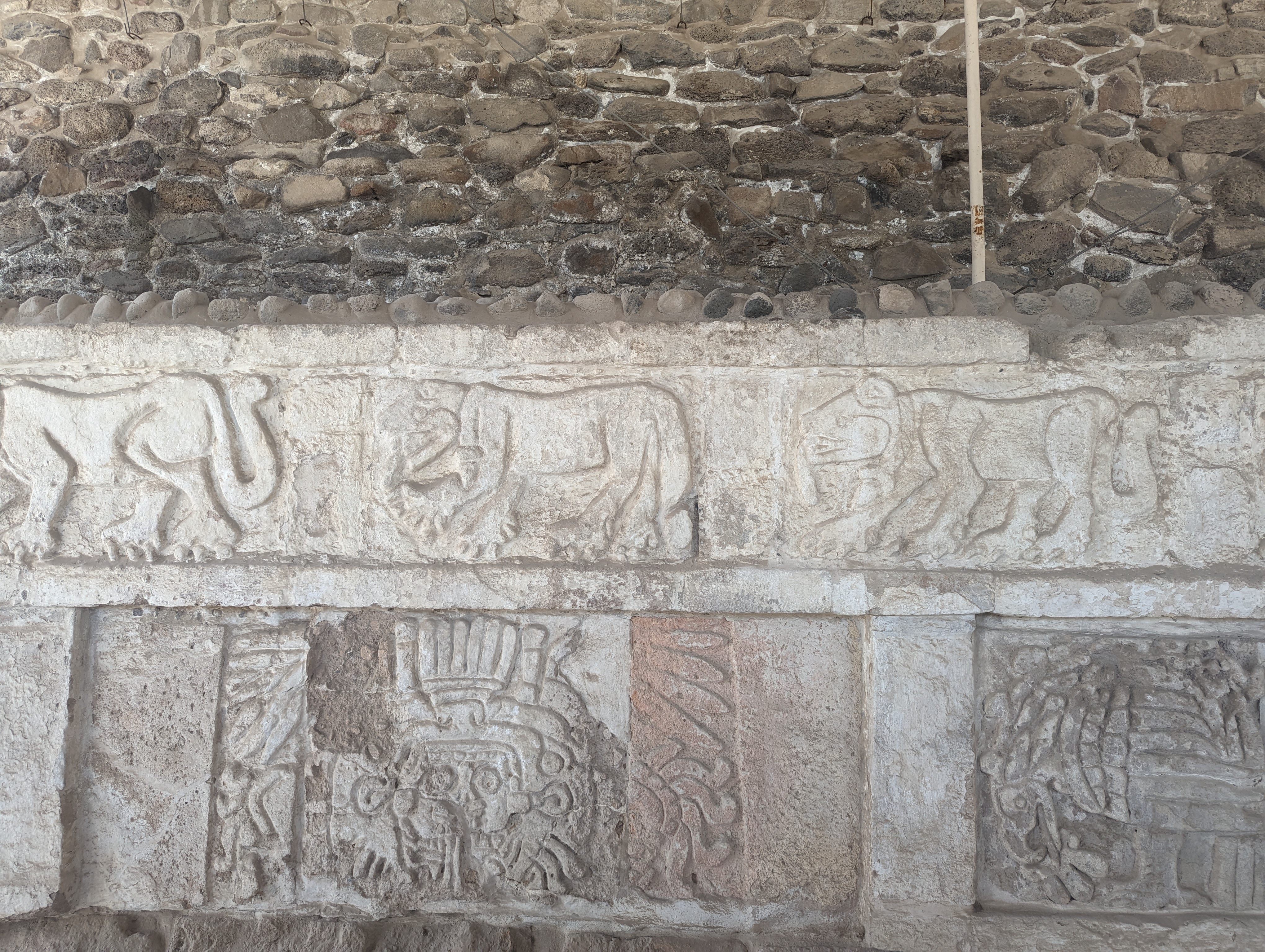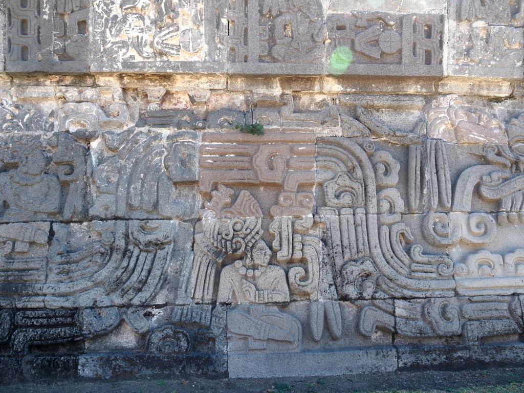—the stone reliefs around the Pyramid of Quetzalcoatl,