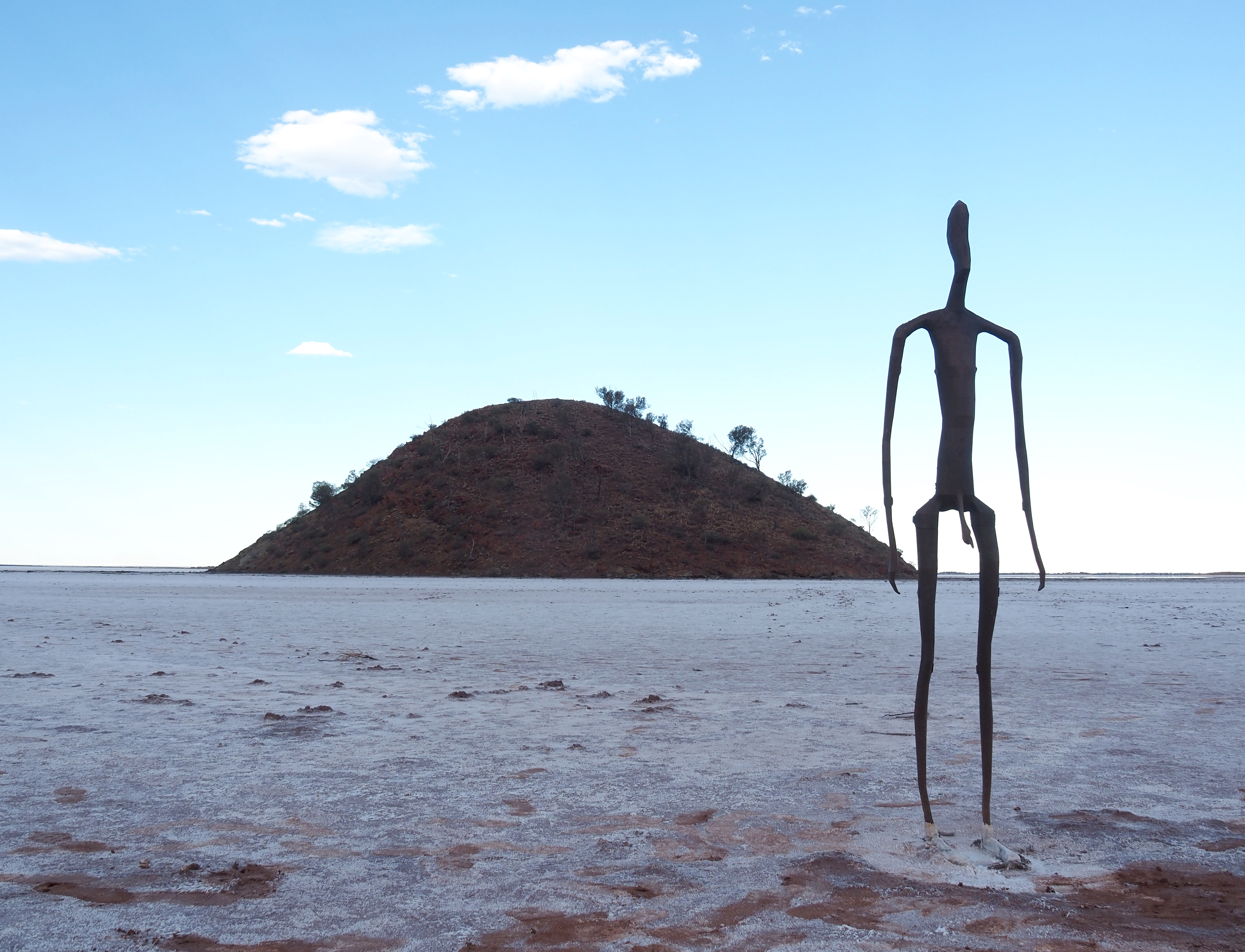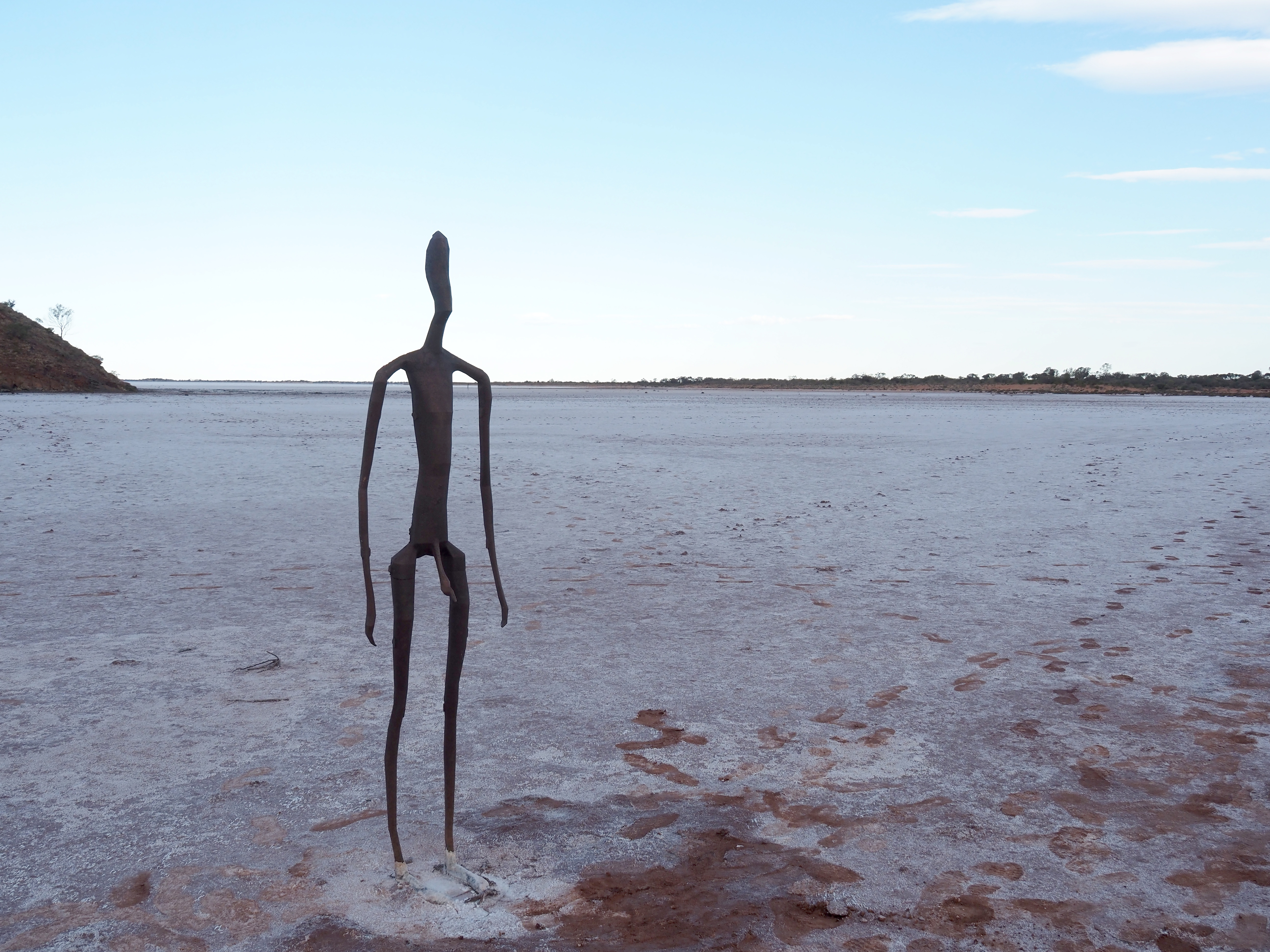 We spent the night wild camping close to the “Inside Australia” monument at Lake Ballard. And we were very sorry. Imagine sleeping on the shore of the vast, salt lake with ghostly, strange figures around you. Imagine that there is no other human being, except your husband in a radius of at least 100 km. Imagine that the temperature was 48 degrees during the day, dropping to 39 when the sun went down, and we are without AC. And now imagine that you open the windows of the camper and all, millions of flies, small bugs, and mosquitoes decide to pay you a visit inside your home.
