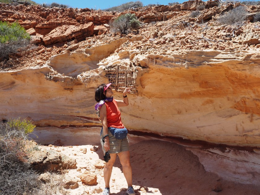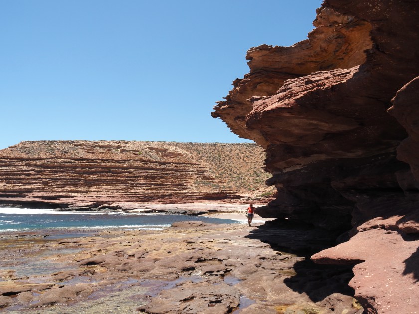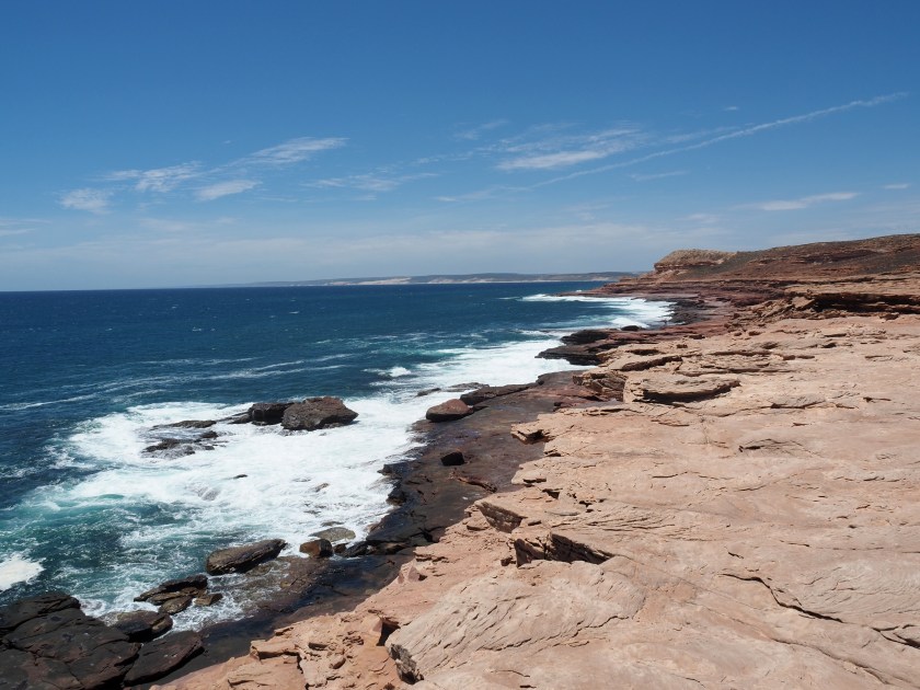 I really fell in love with Kalbarri. Imagine a small town (or large village) in the north of Western Australia. One shop, two petrol stations, a few half-empty hotels/holiday houses, two restaurants, a cafe, and fishermen unloading the day’s catch. Swallows flocking along the wires and fences, parrots in the grass, kangaroos and emus in the clearing.